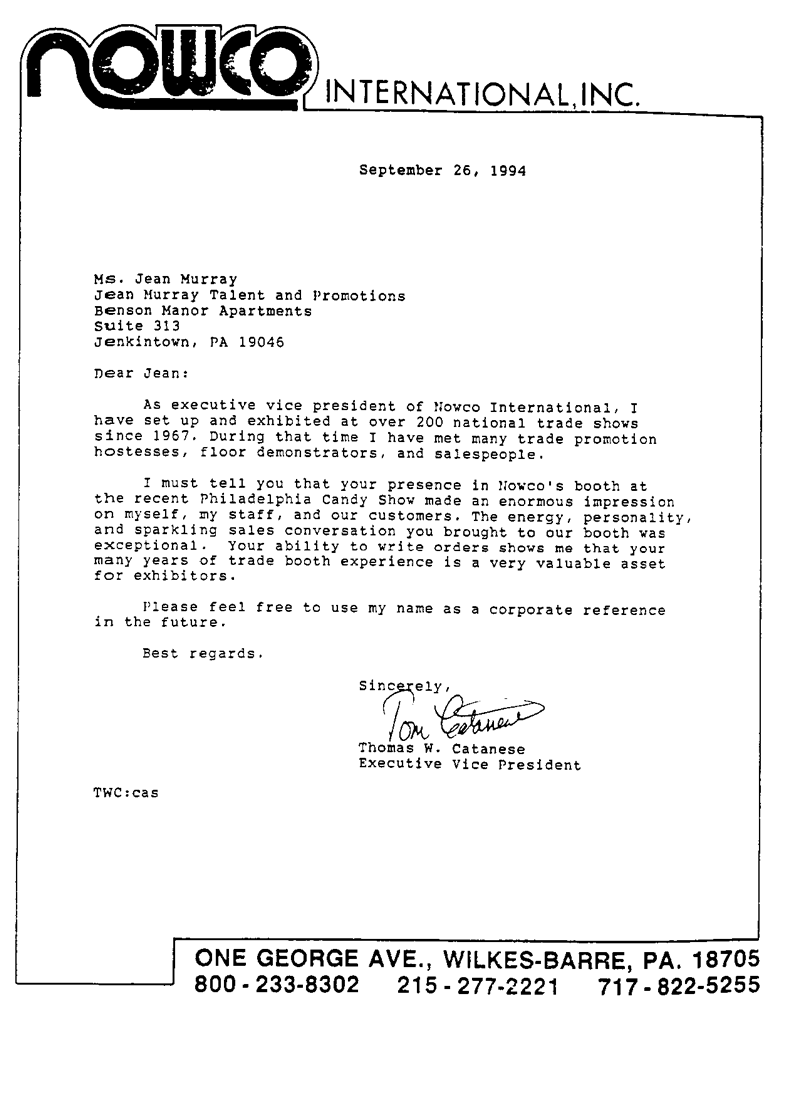 Jean Murray Talent & Promotions, 602 Harbour Ridge Lane, Downingtown, PA 19335 - Email: jmurraytp@yahoo.com